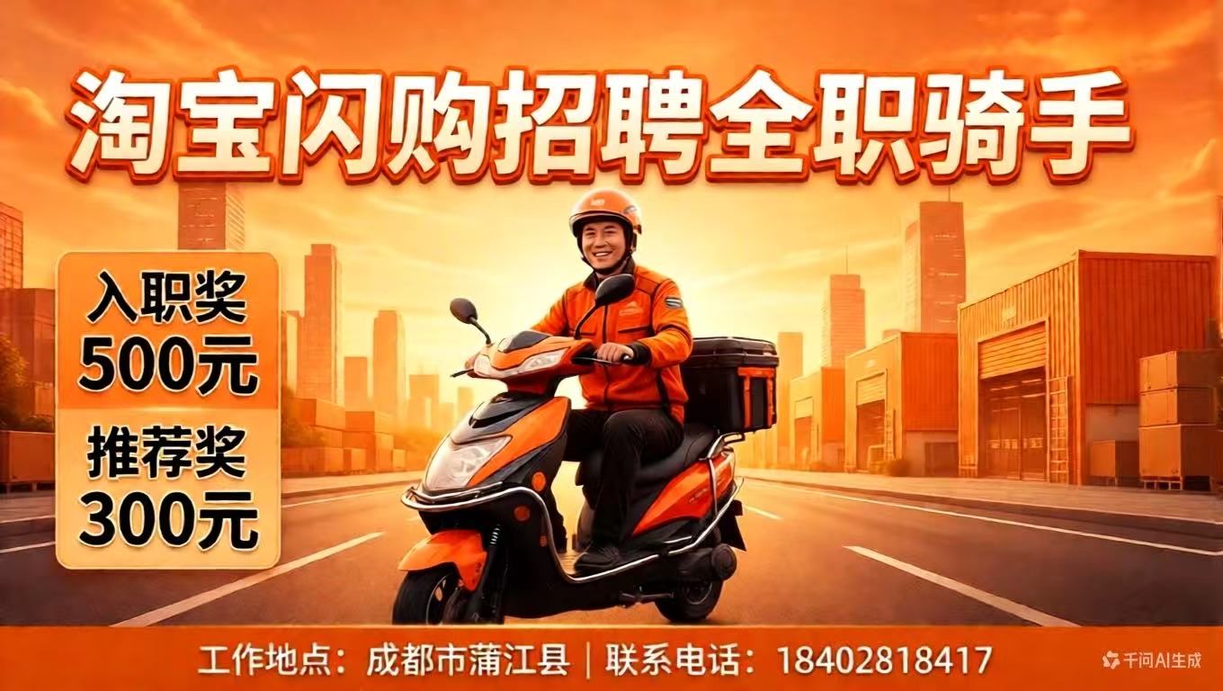 淘宝闪购骑手、推荐入职奖励共计800元
